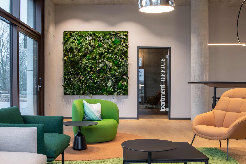 Wir verbinden den Komfort deines ipartments mit dem Service eines Hotels. Genau dafür ist die Lounge im EG gedacht. Optimal für Coworking, ein Feierabendbier mit den Nachbarn oder einfach nur zum Entspannen. Die angeschlossene Terrasse mit Blick auf die begrünte Piazza lädt zum lässigen Verweilen ein. You are welcome!