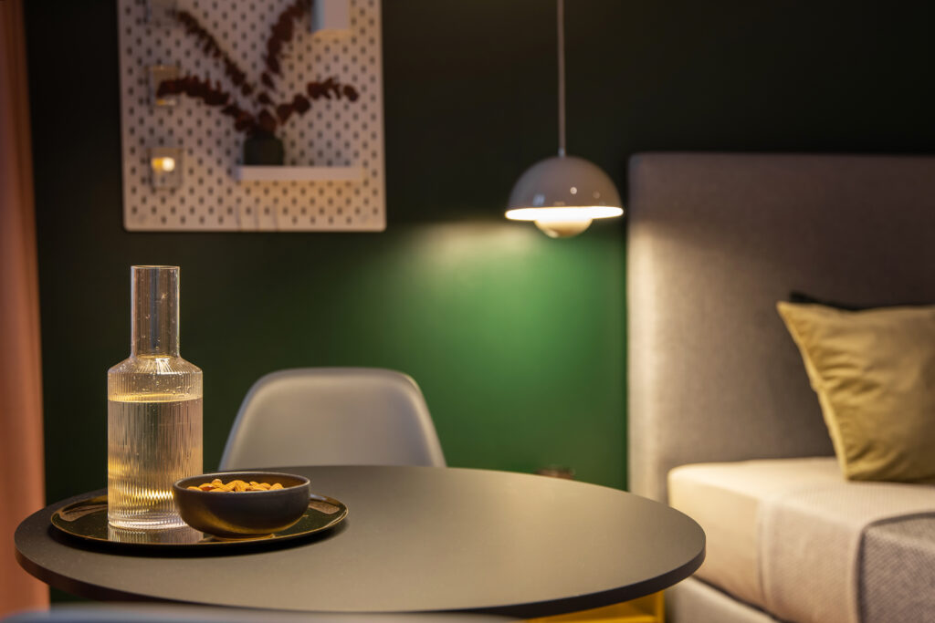 Mehr Platz, auch für Zwei: Das ipartment Smart hat alles, was du dir für einen längeren und komfortablen Aufenthalt wünscht. Es ist voll ausgestattet und clever aufgeteilt. Designerküche, 160 cm Boxspringbett, Lounge- und Arbeitszone inklusive.