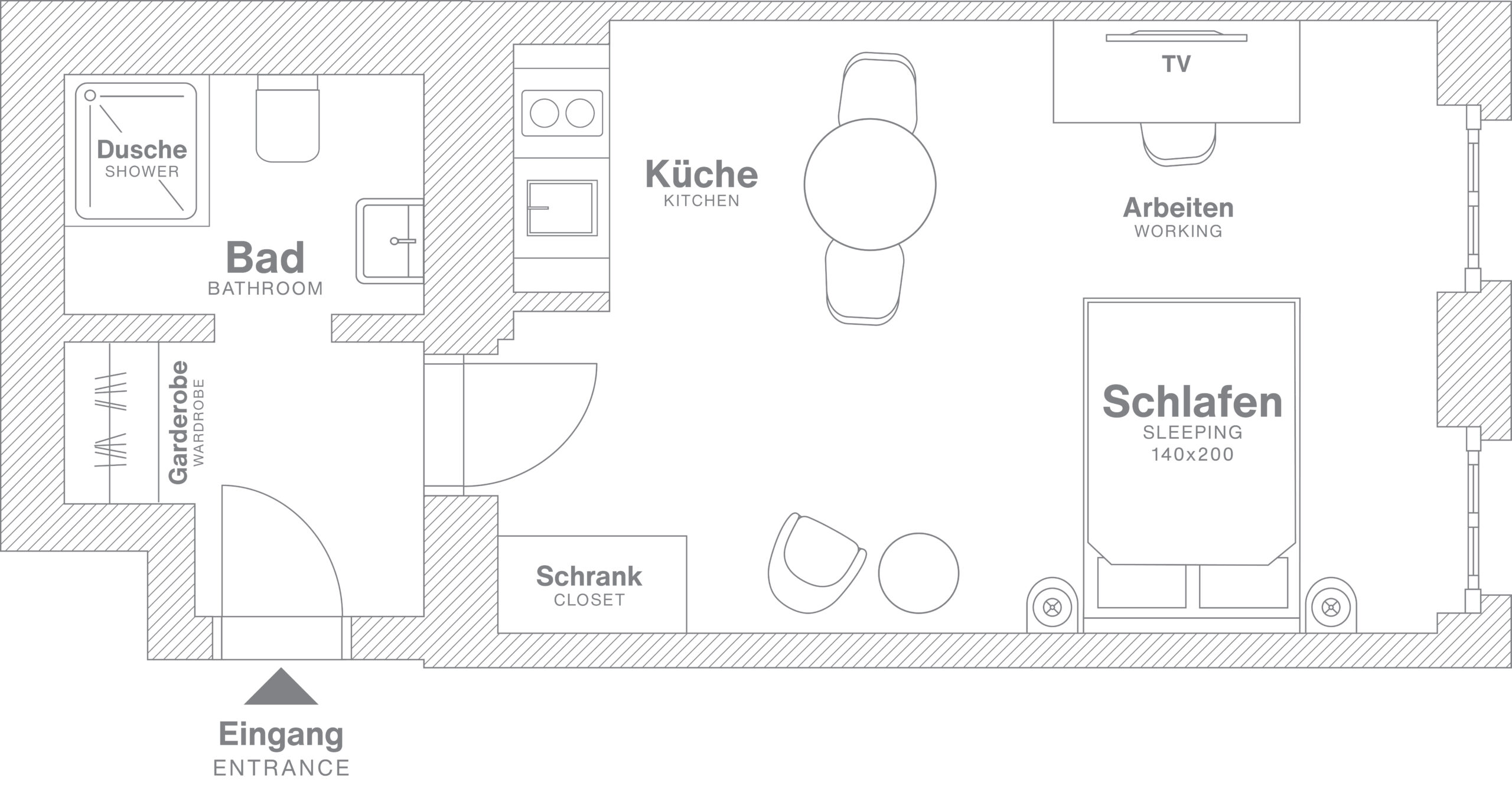 CA. 32 qm // KREATIV-CLEVERES RAUMWUNDER: PERFEKT FÜR LONG-STAY BUSINESS UND MESSEGÄSTE