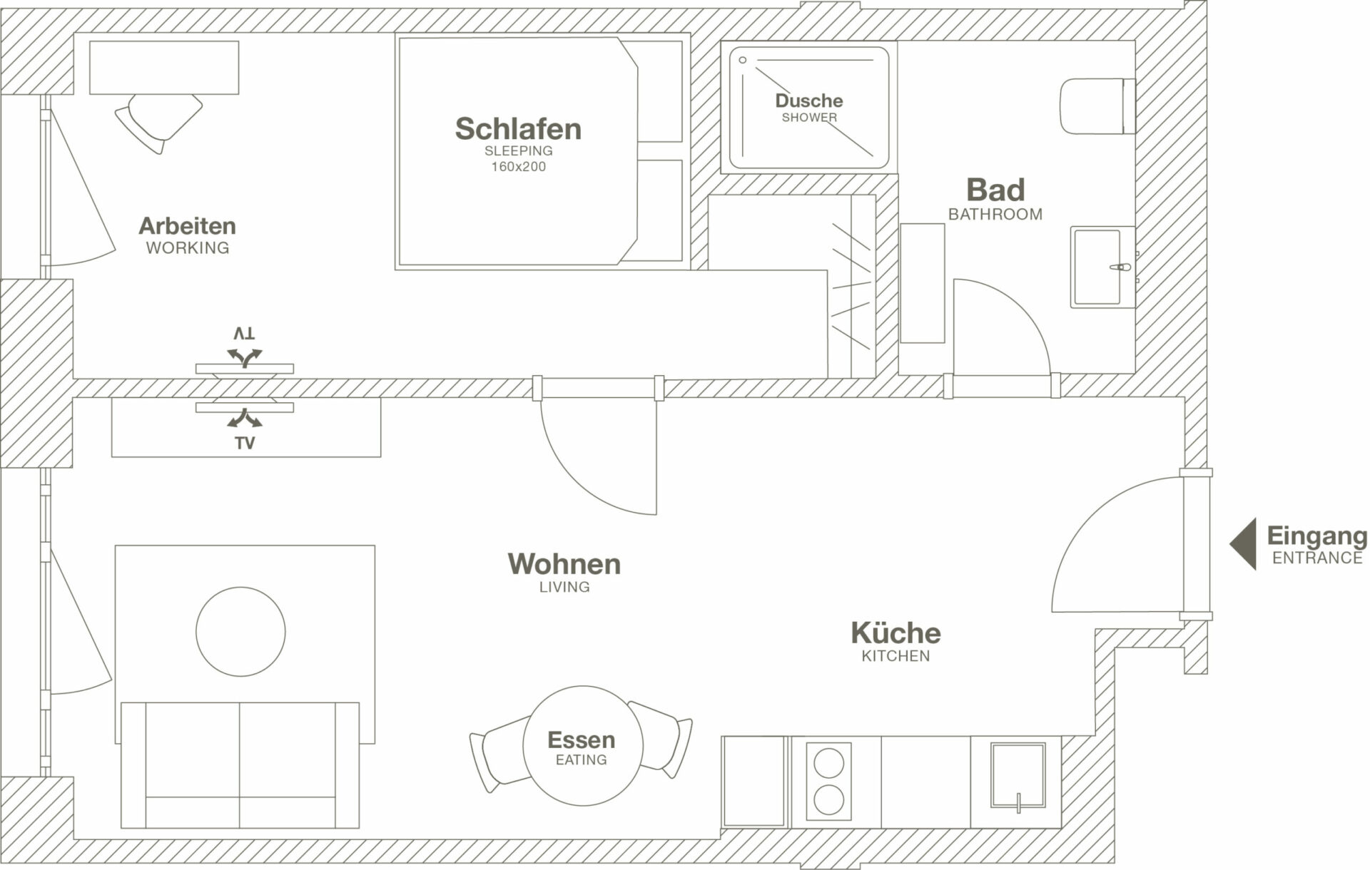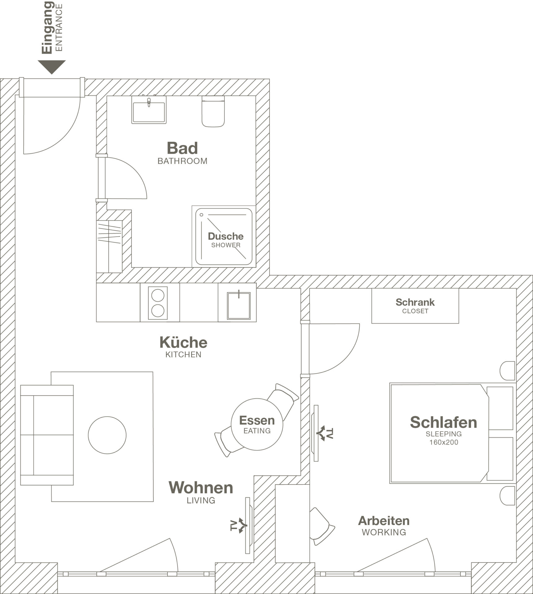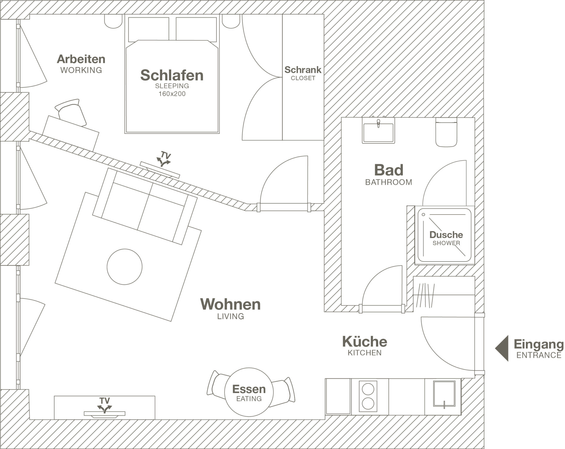 Welcome-Paket, digitale Gästemappe, Concierge-Service, 24/7 Hotline, Nebenkosten, Strom, WiFi, Sat-TV, Basisservice (Putz- und Wäscheservice alle 14 Tage) und 7% MwSt incl.