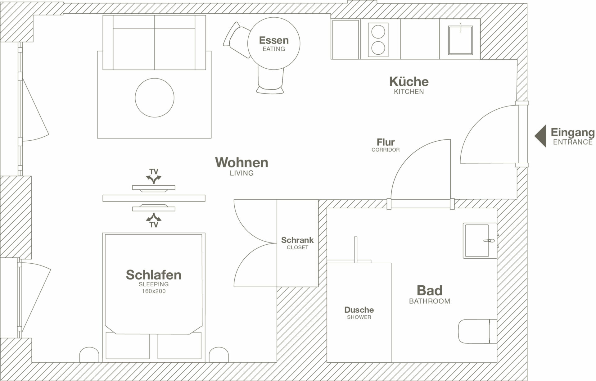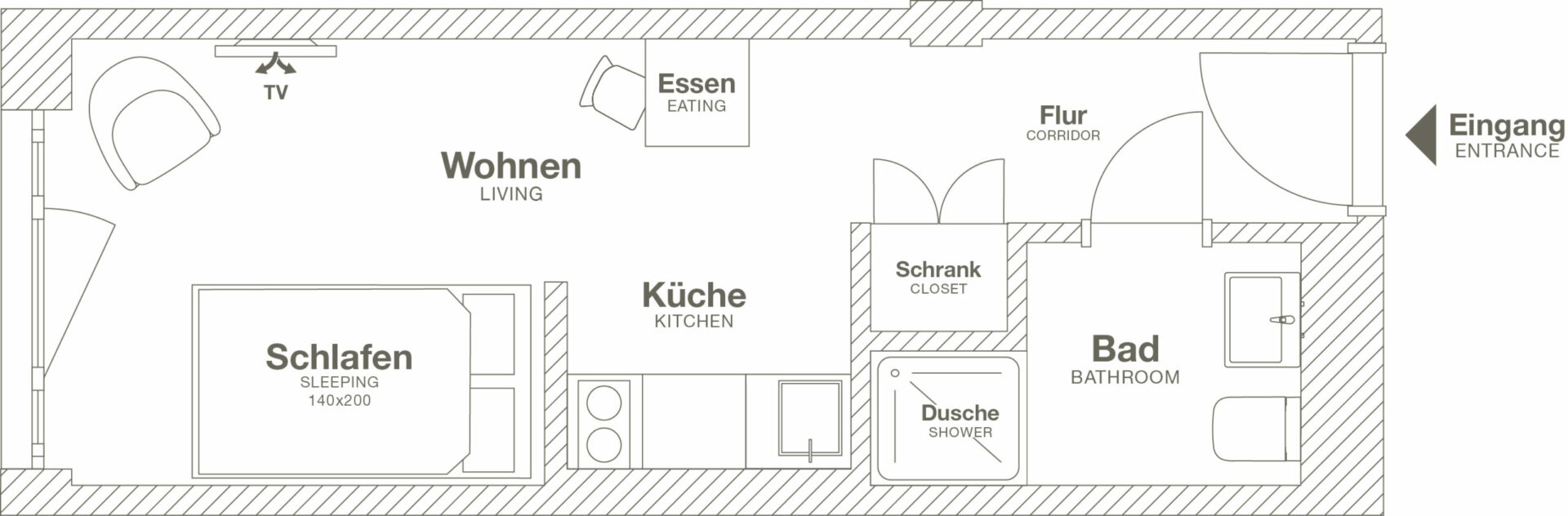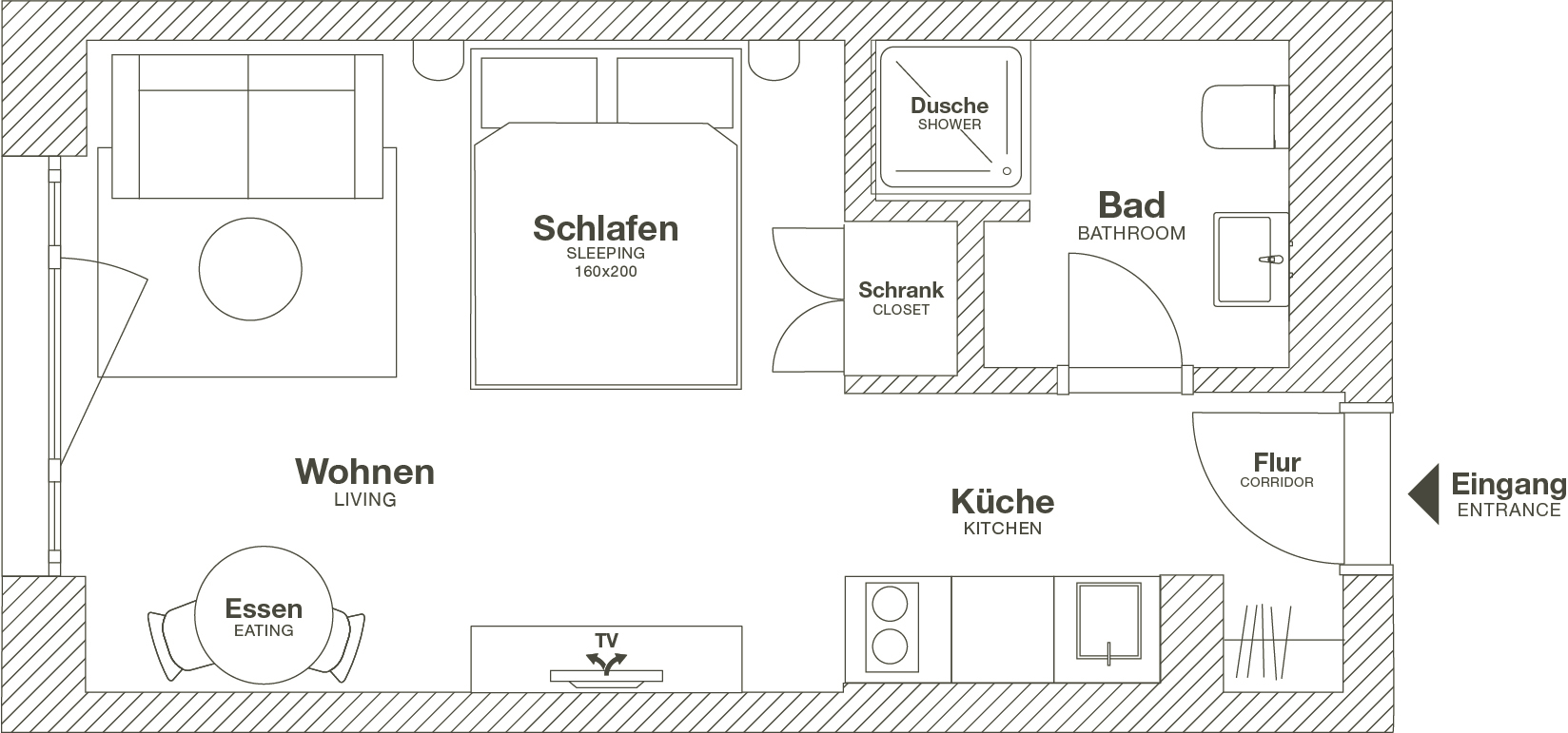 CA. 20 qm // KOMPAKT, ABER VOLLSTÄNDIG AUSGESTATTET: OPTIMAL FÜR ALLE, DIE ALLEINE UNTERWEGS SIND