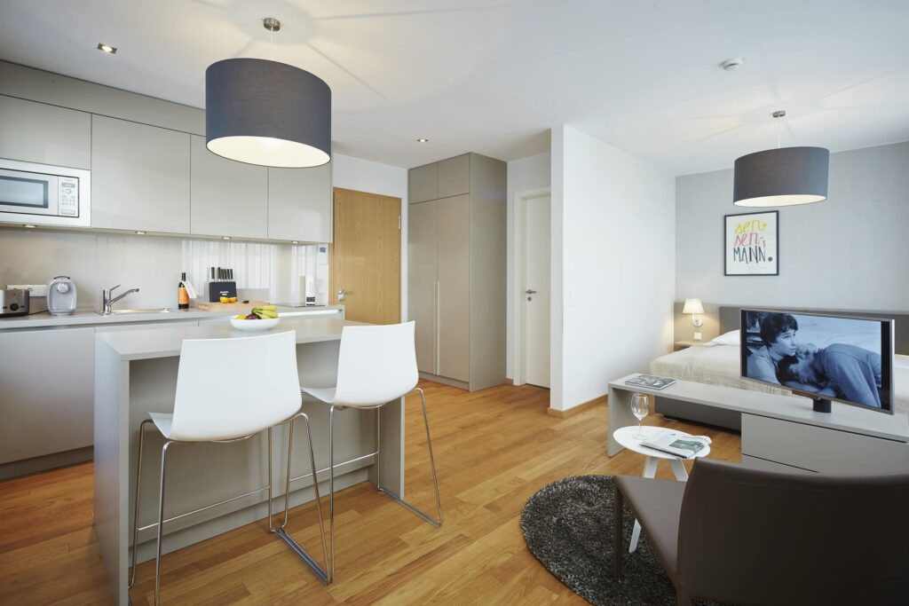 73 voll ausgestattete und möblierte Design Serviced Apartments.