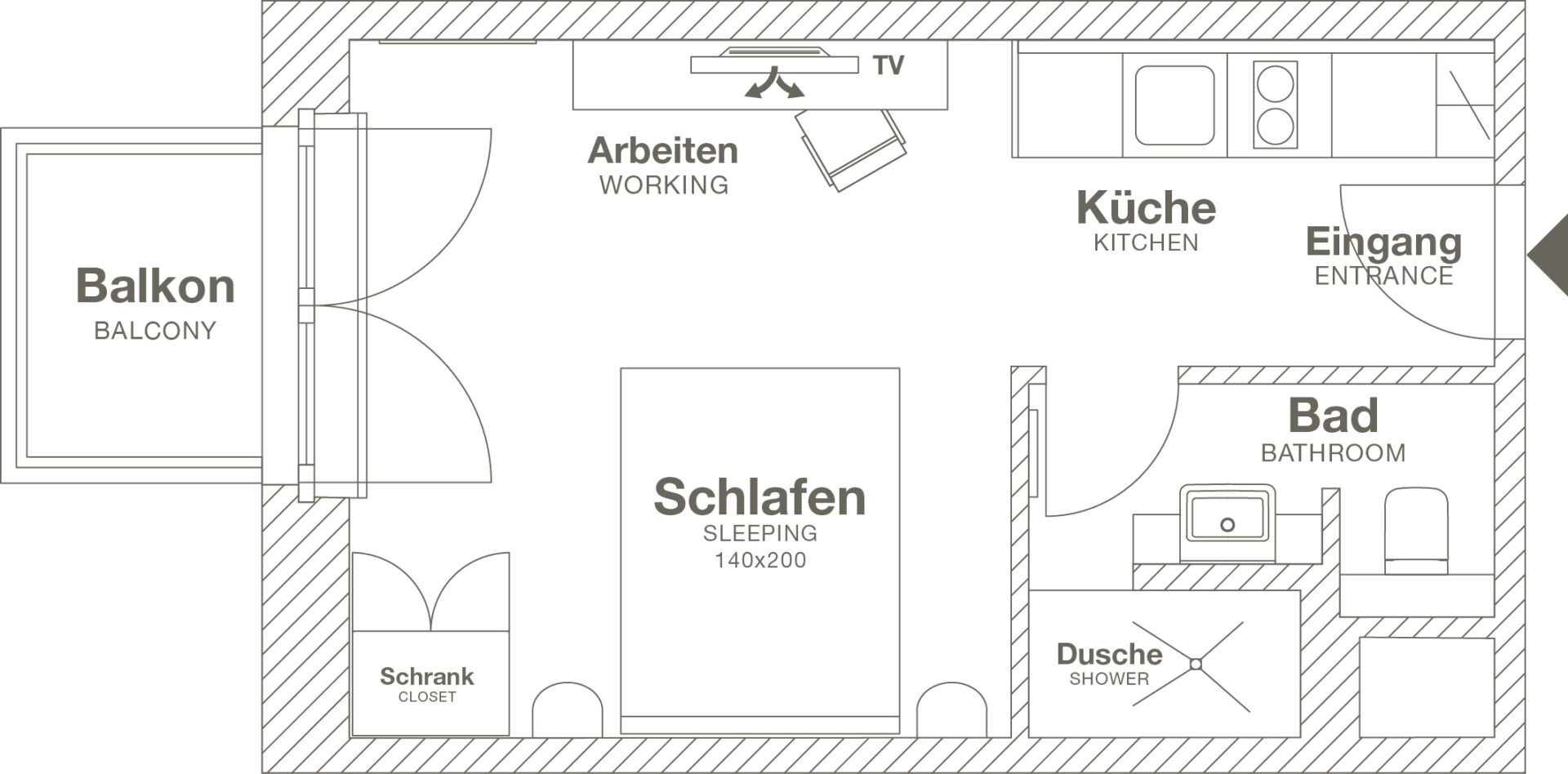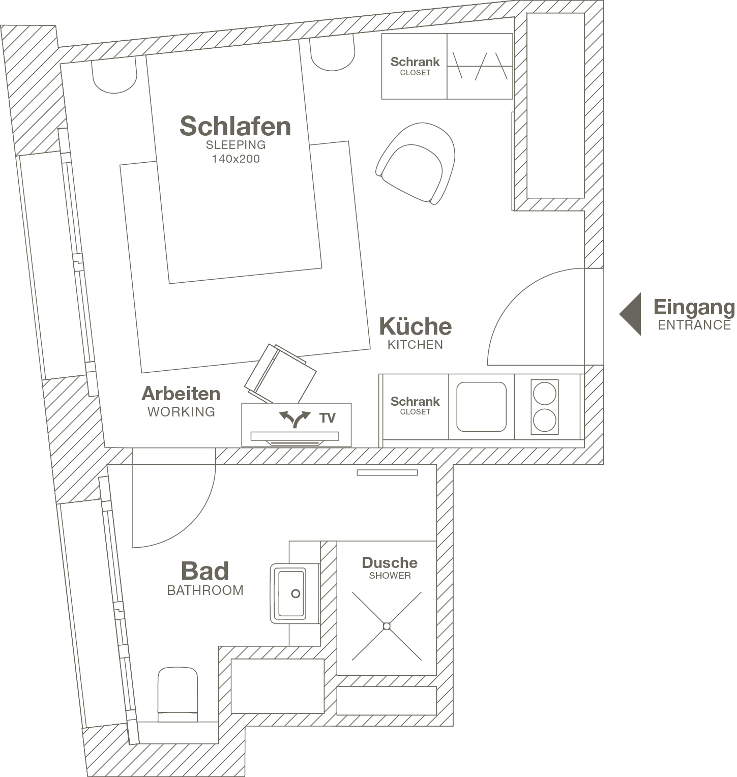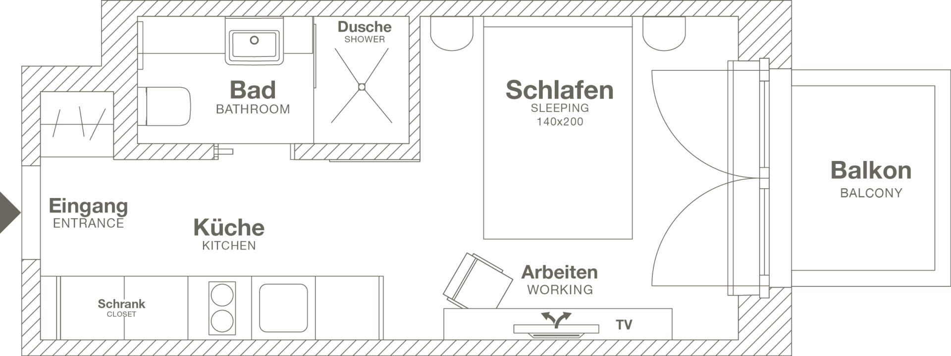 CA. 19-22 QM // KOMPAKT, ABER VOLLSTÄNDIG AUSGESTATTET: OPTIMAL FÜR ALLE, DIE ALLEINE UNTERWEGS SIND