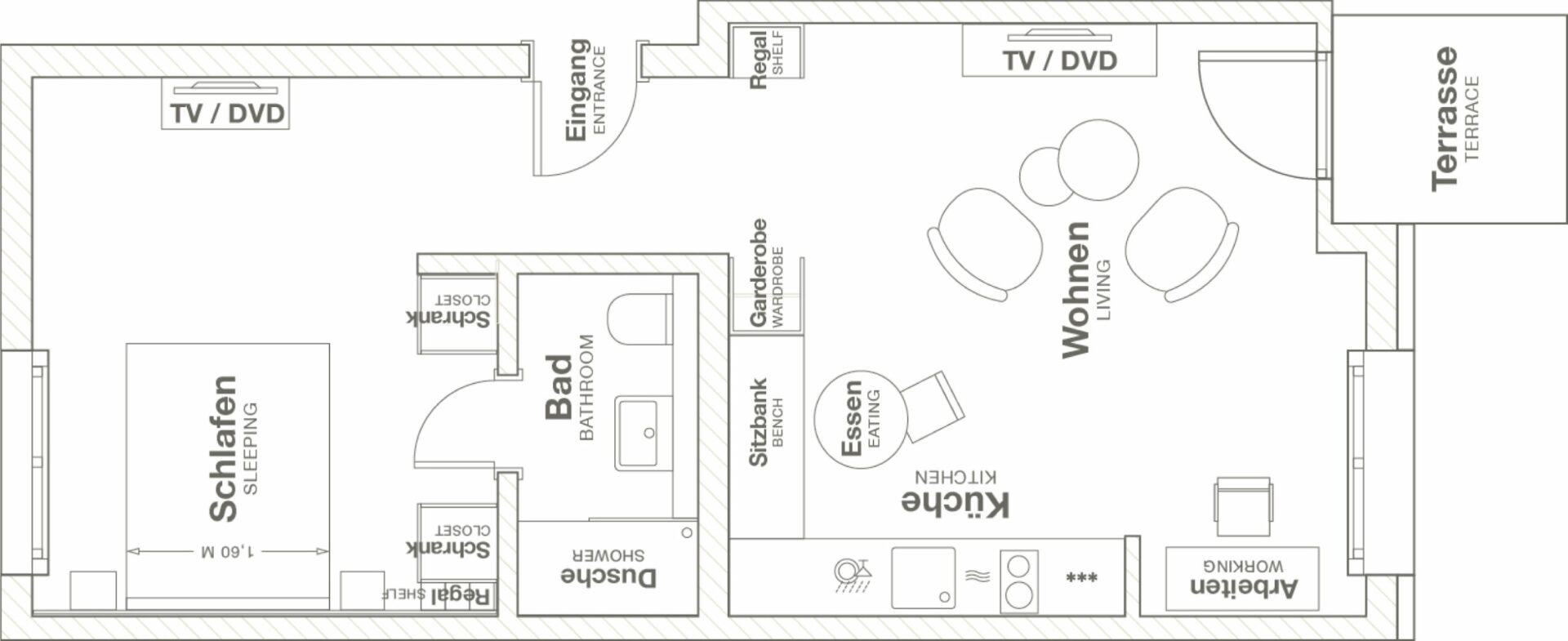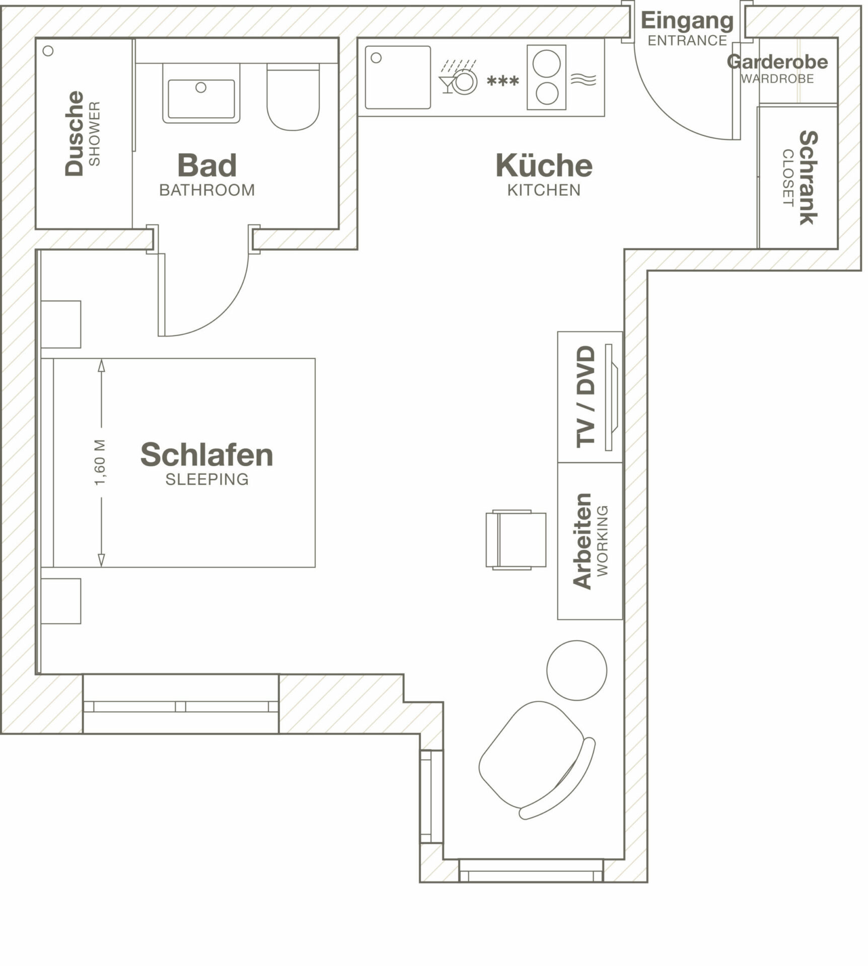 Welcome-Paket, digitale Gästemappe, Concierge-Service, 24/7 Hotline, Nebenkosten, Strom, WiFi, Sat-TV, Basisservice (Putz- und Wäscheservice alle 14 Tage) und 7% MwSt incl.