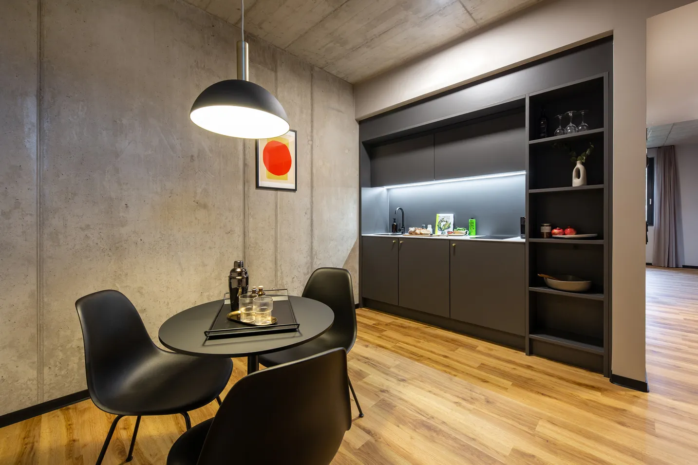 32 voll ausgestattete und möblierte Design Serviced Apartments.