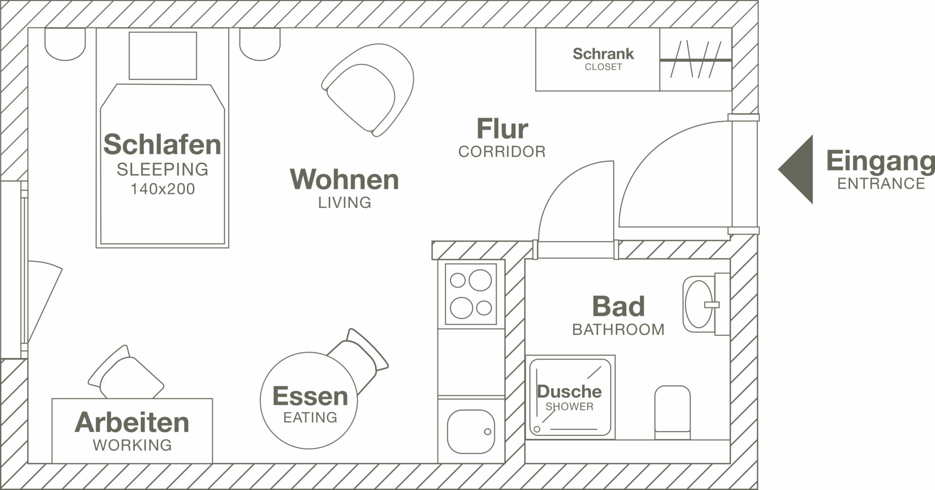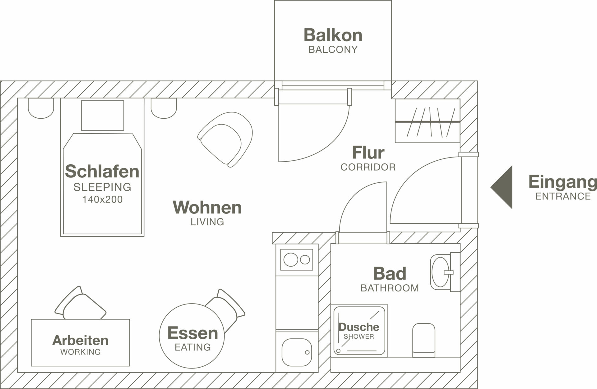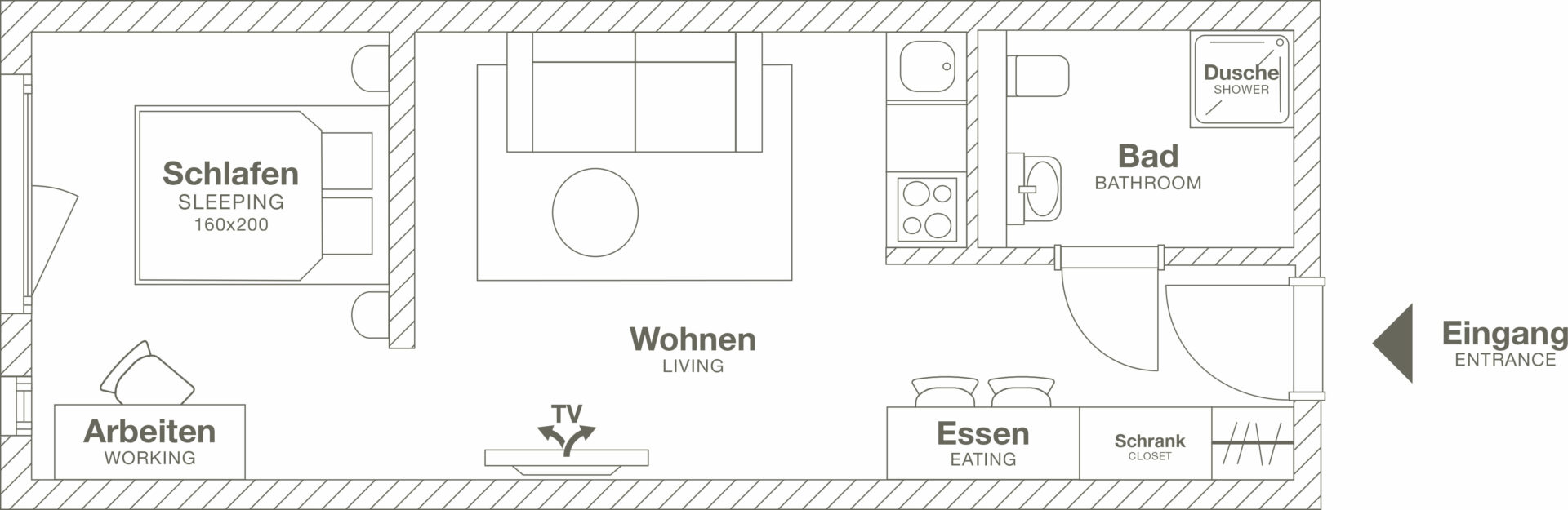32 voll ausgestattete und möblierte Design Serviced Apartments.