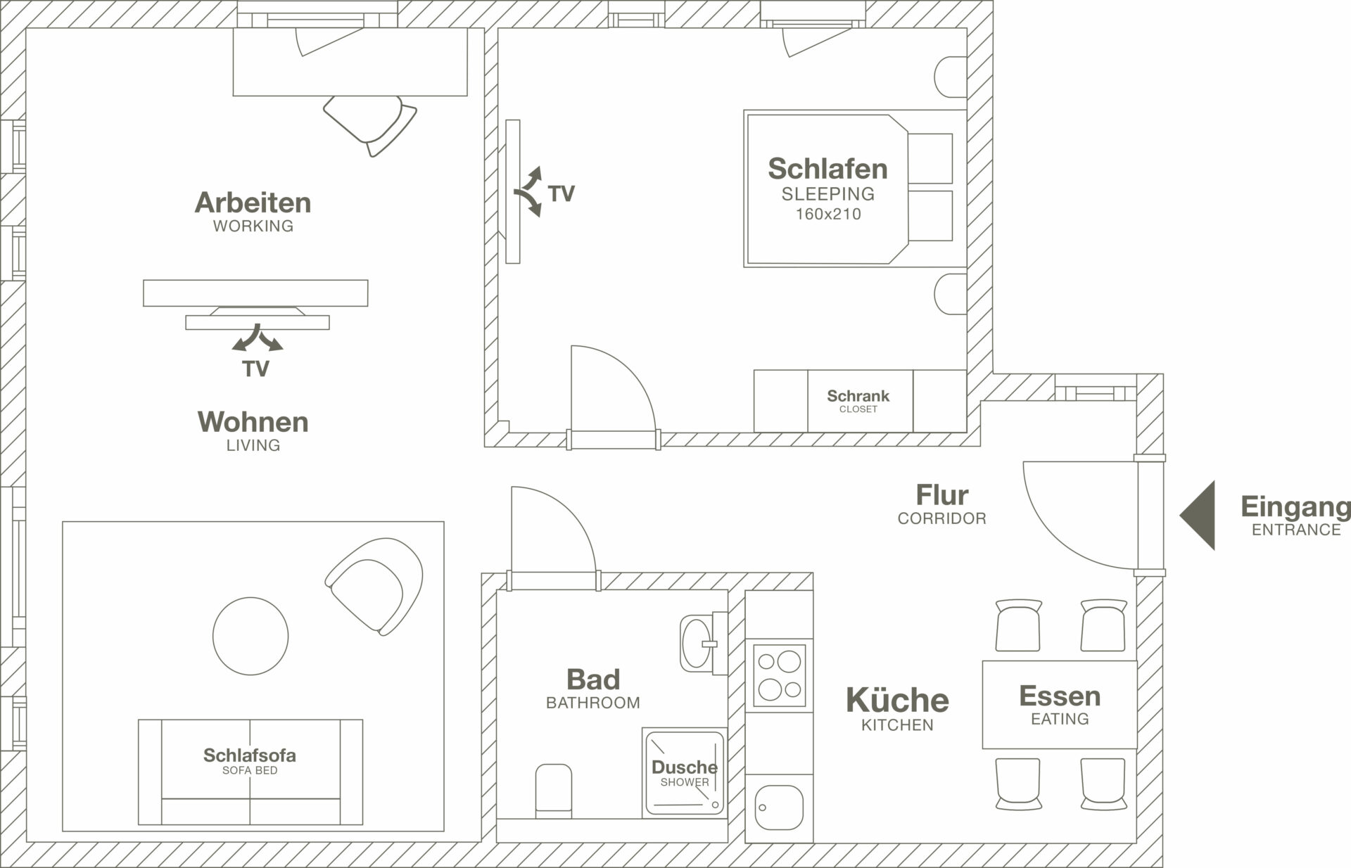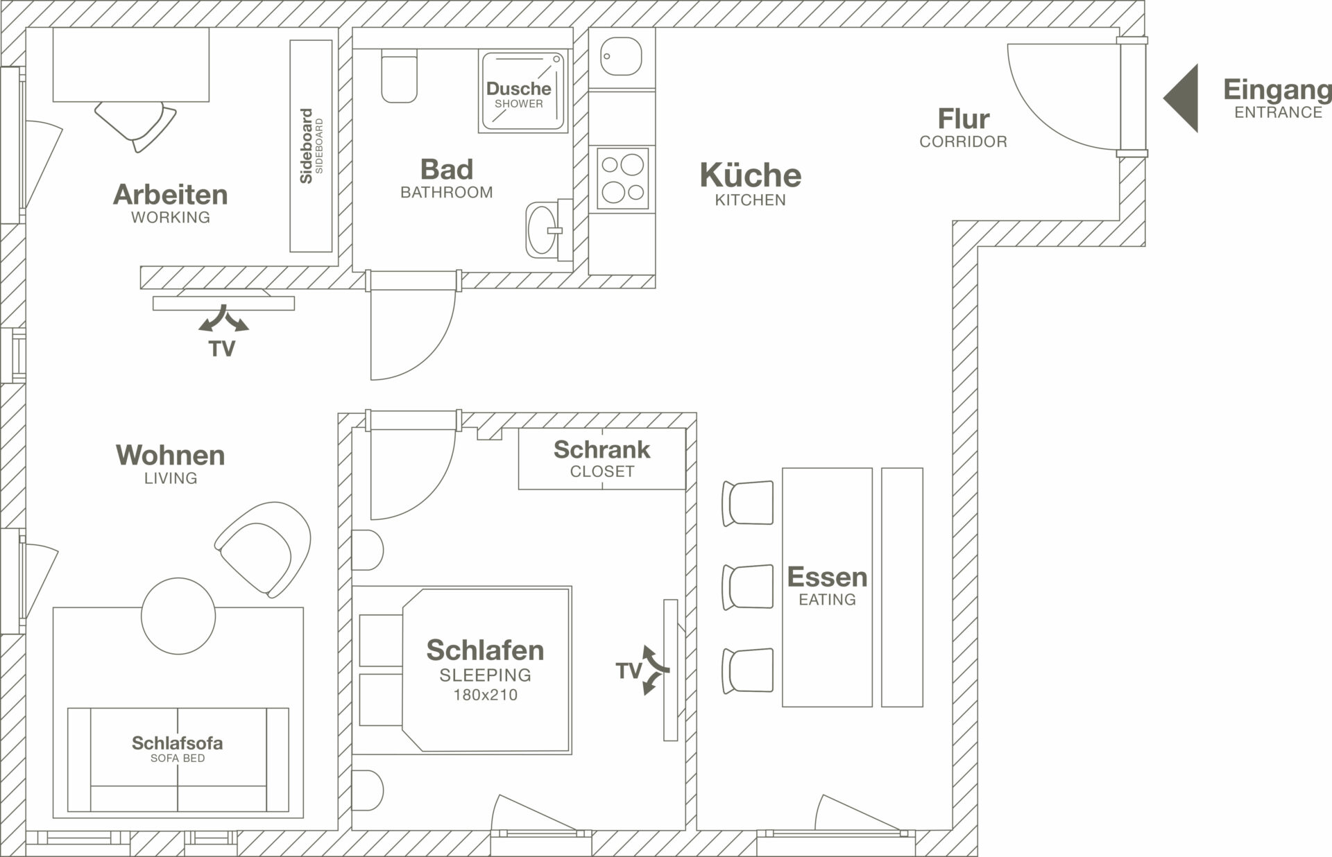 Welcome-Paket, digitale Gästemappe, 24/7 Hotline, Nebenkosten, Strom, WiFi, Sat-TV, Basisservice (Putz- und Wäscheservice alle 14 Tage) und 7% MwSt incl.