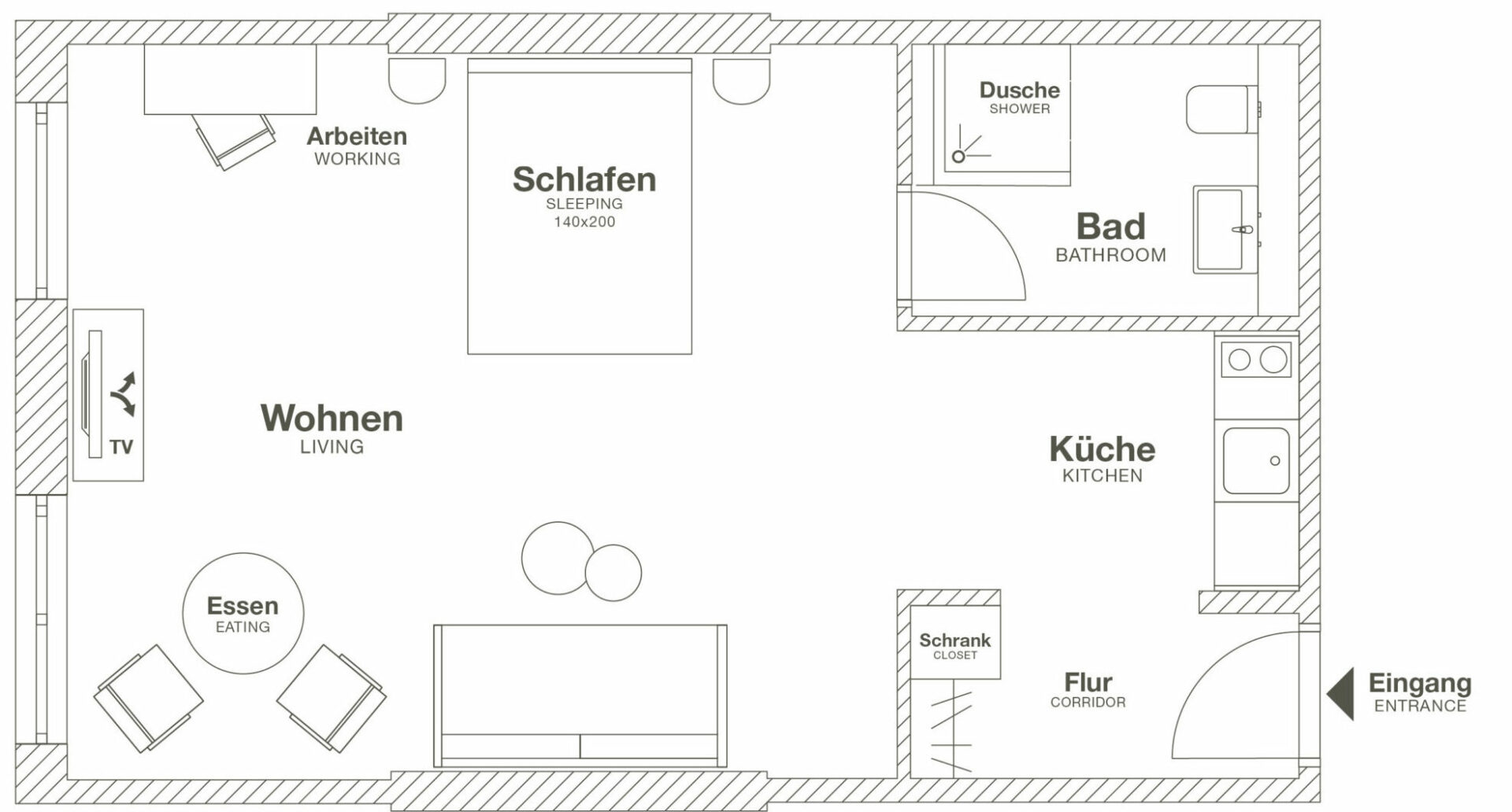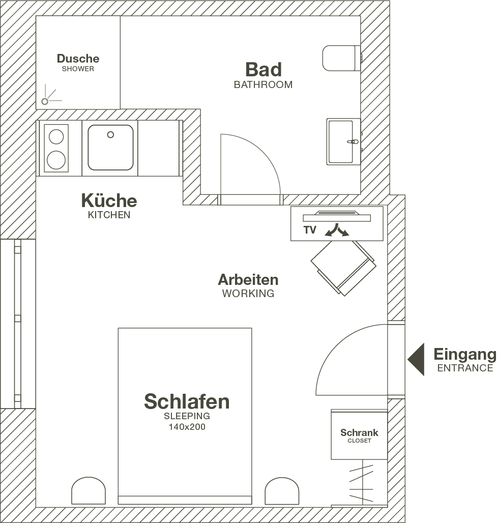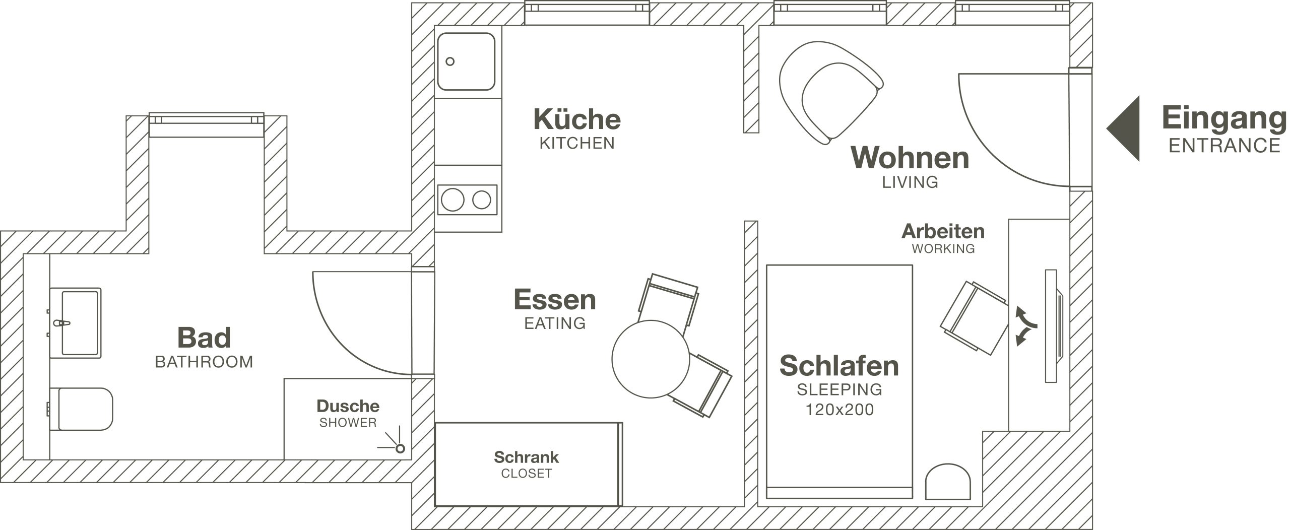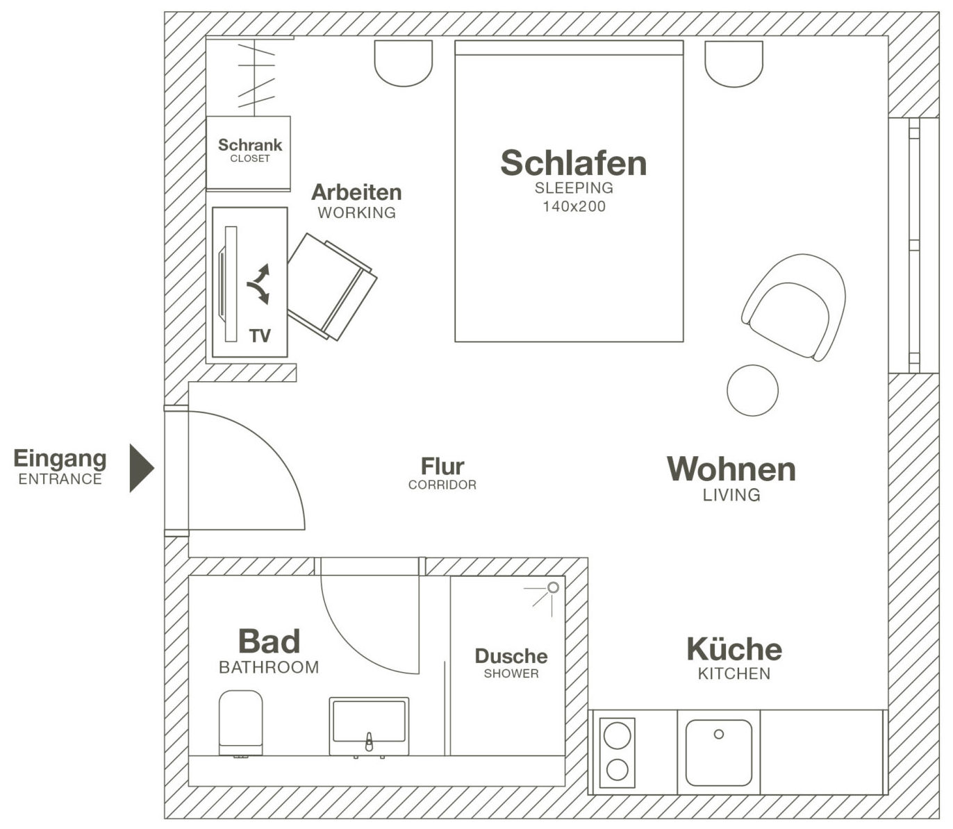 ca. 24-28 QM // KREATIV-CLEVERES RAUMWUNDER: PERFEKT FÜR LONG-STAY BUSINESS UND MESSEGÄSTE