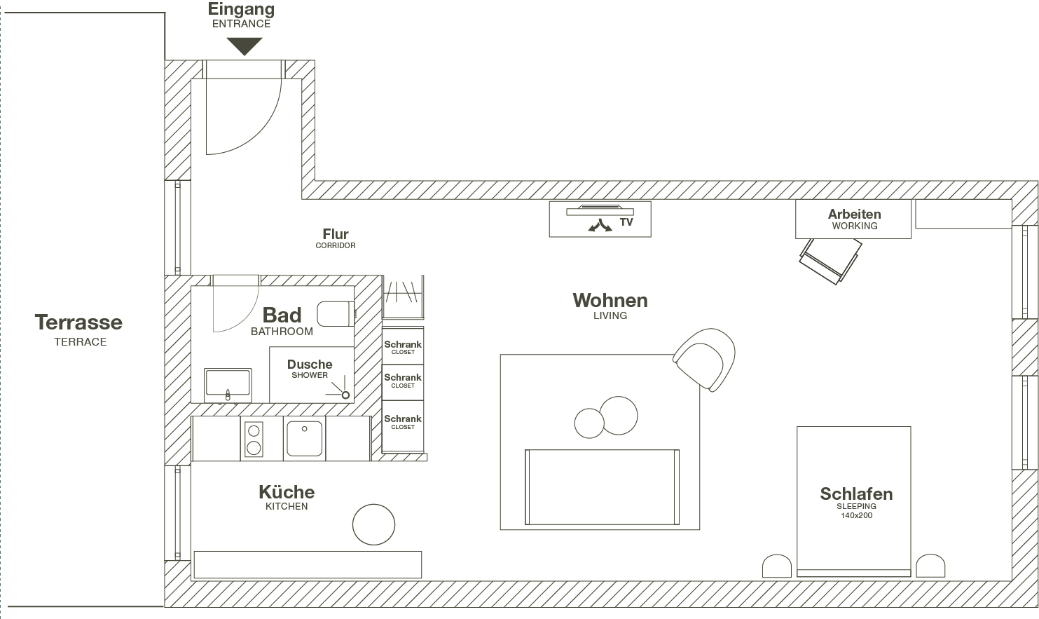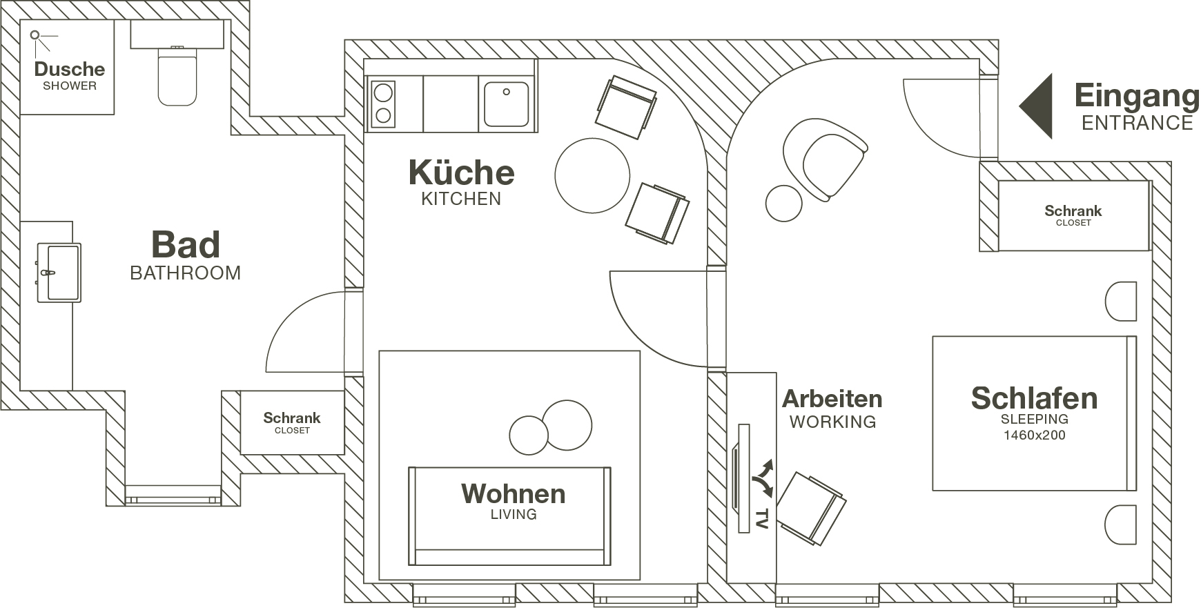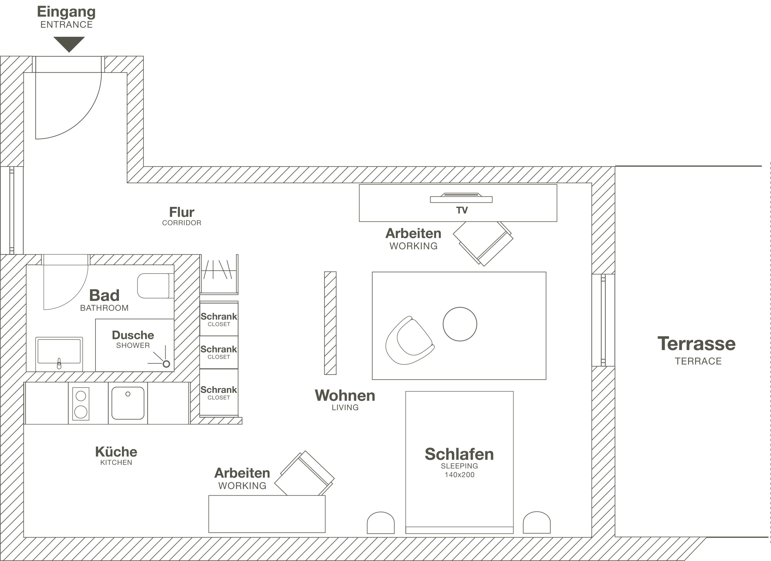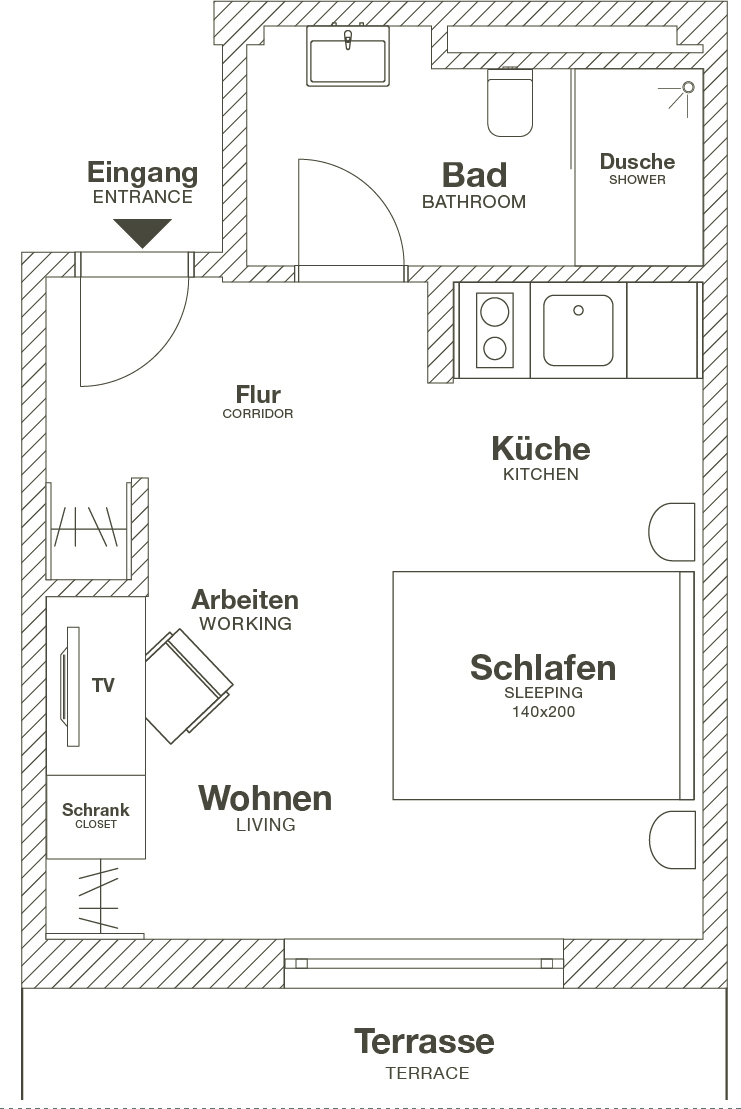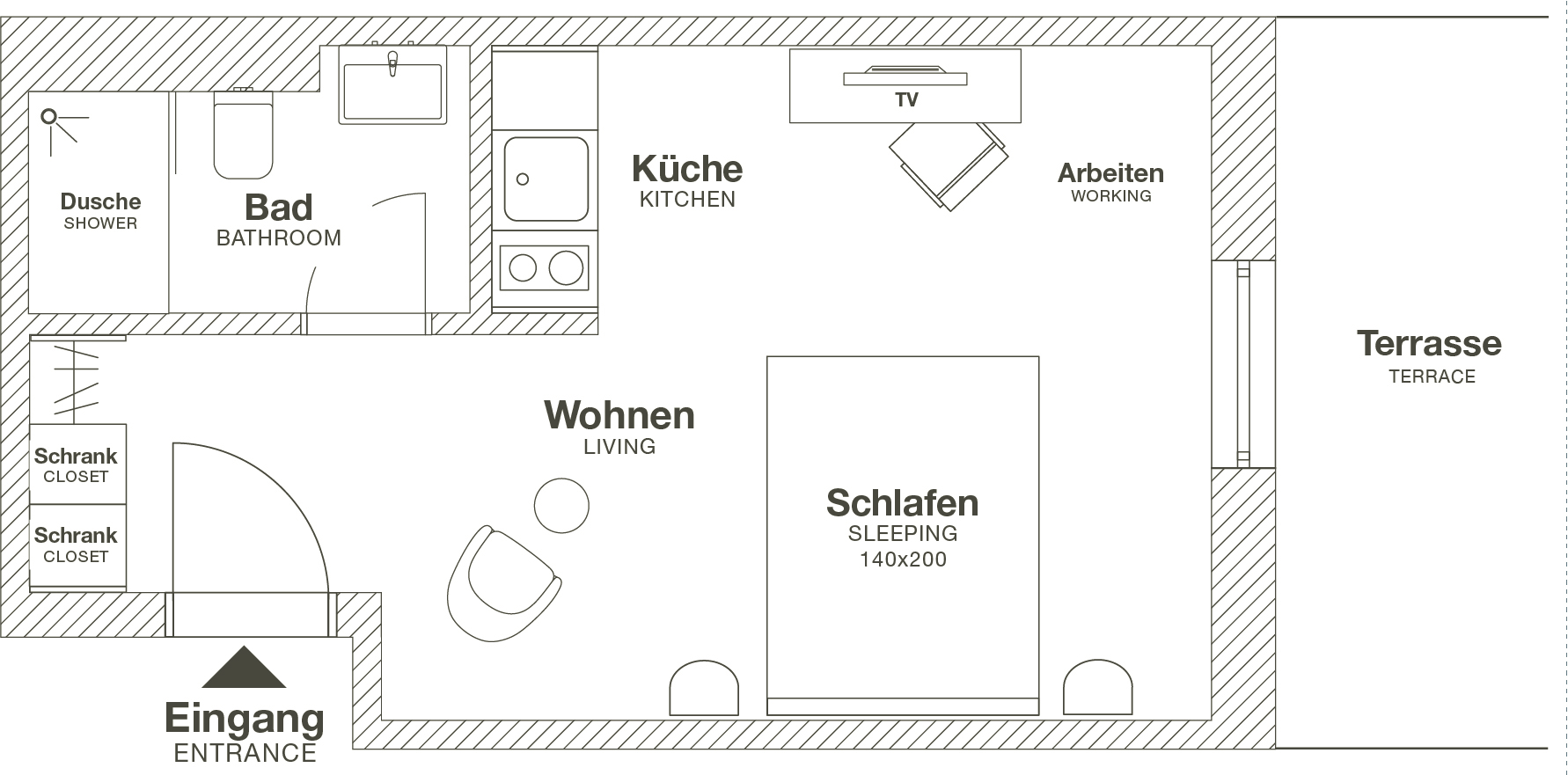 ca. 24-28 QM // KREATIV-CLEVERES RAUMWUNDER: PERFEKT FÜR LONG-STAY BUSINESS UND MESSEGÄSTE