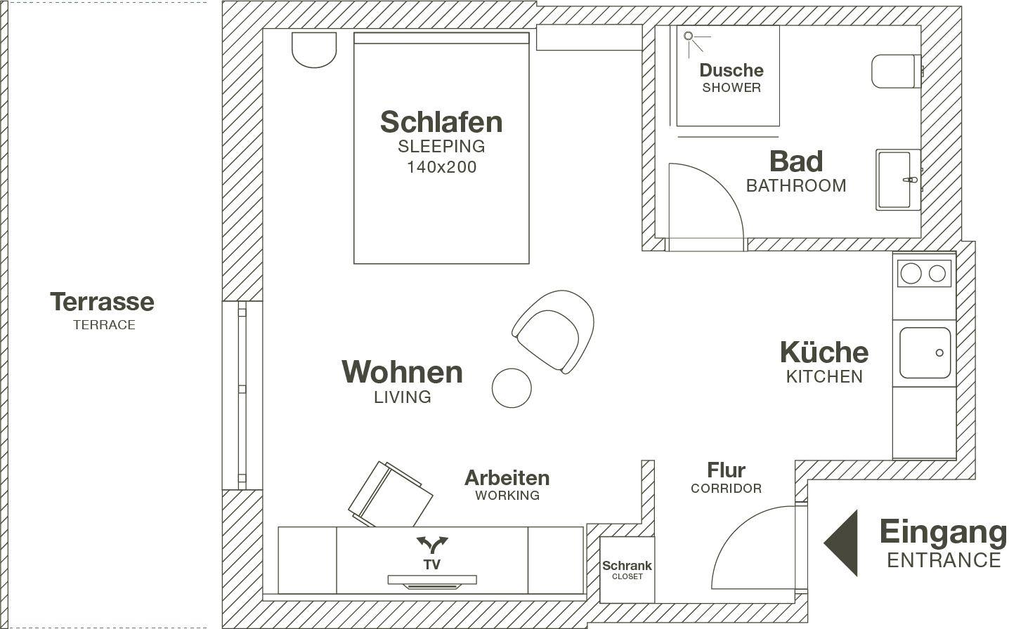 CA. 21 Qm // KOMPAKT, ABER VOLLSTÄNDIG AUSGESTATTET: OPTIMAL FÜR ALLE, DIE ALLEINE UNTERWEGS SIND