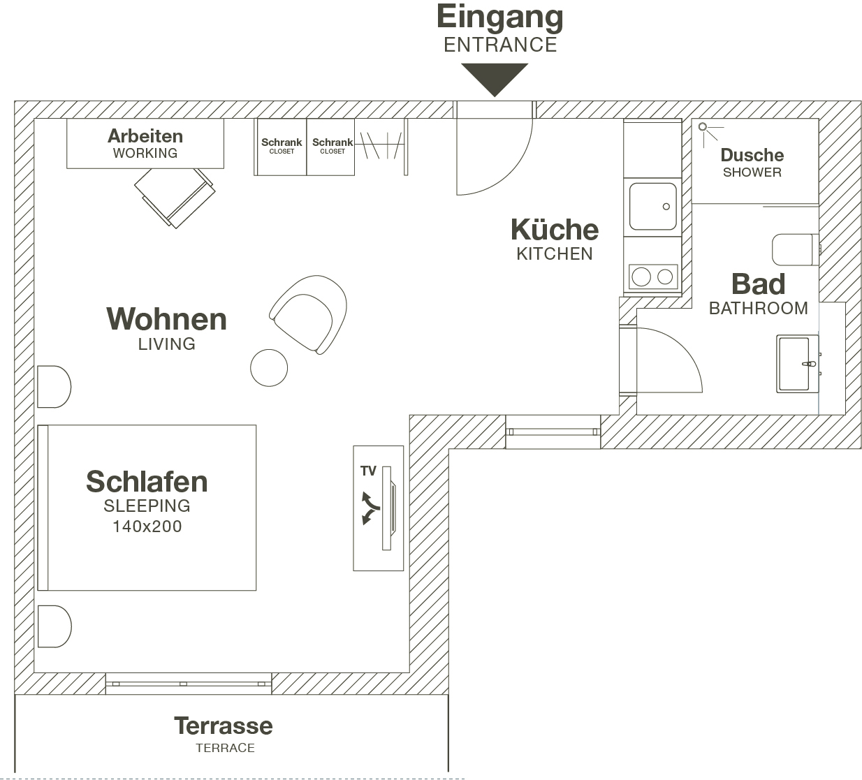 Welcome-Paket, digitale Gästemappe, Concierge-Service, 24/7 Hotline, Nebenkosten, Strom, WiFi, Sat-TV, Basisservice (Putz- und Wäscheservice alle 14 Tage) und 7% MwSt incl.